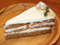 Mrkvový korpus s citrónovo-tvarohovým krémem , sypaný vlašskými ořechy Velikost dortu: 24 cm Pro alergiky na ořechy je možné vyrobit dort bez ořechů