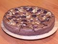 Pečený Cheesecake s mléčnou čokoládou a ochucený likérem Amaretto , který mu dává příjemnou mandlovou chuť