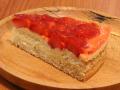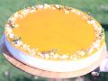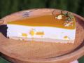 sušenkový základ , tvarohová náplň s kousky manga, mangové želé