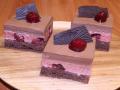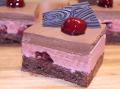 Tmavý korpus s višňovou pěnou, celými višněmi a pěnou z hořké čokolády odběr po 12 kusech